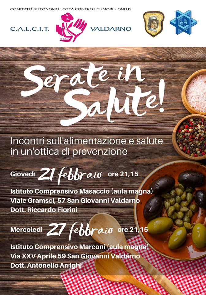 Incontri sull’alimentazione salute in un’ottica di prevenzione, organizzati dal C.A.C.I.T. Valdarno in collaborazione con gli Istituti Scolastici di San Giovanni Valdarno. Le serate sono aperte a tutti!!!