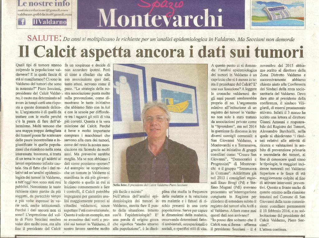 Si riporta qui di seguito l’articolo pubblicato su “Il Valdarno” Ed. Giugno 2016, si ringrazia tutta la Redazione: