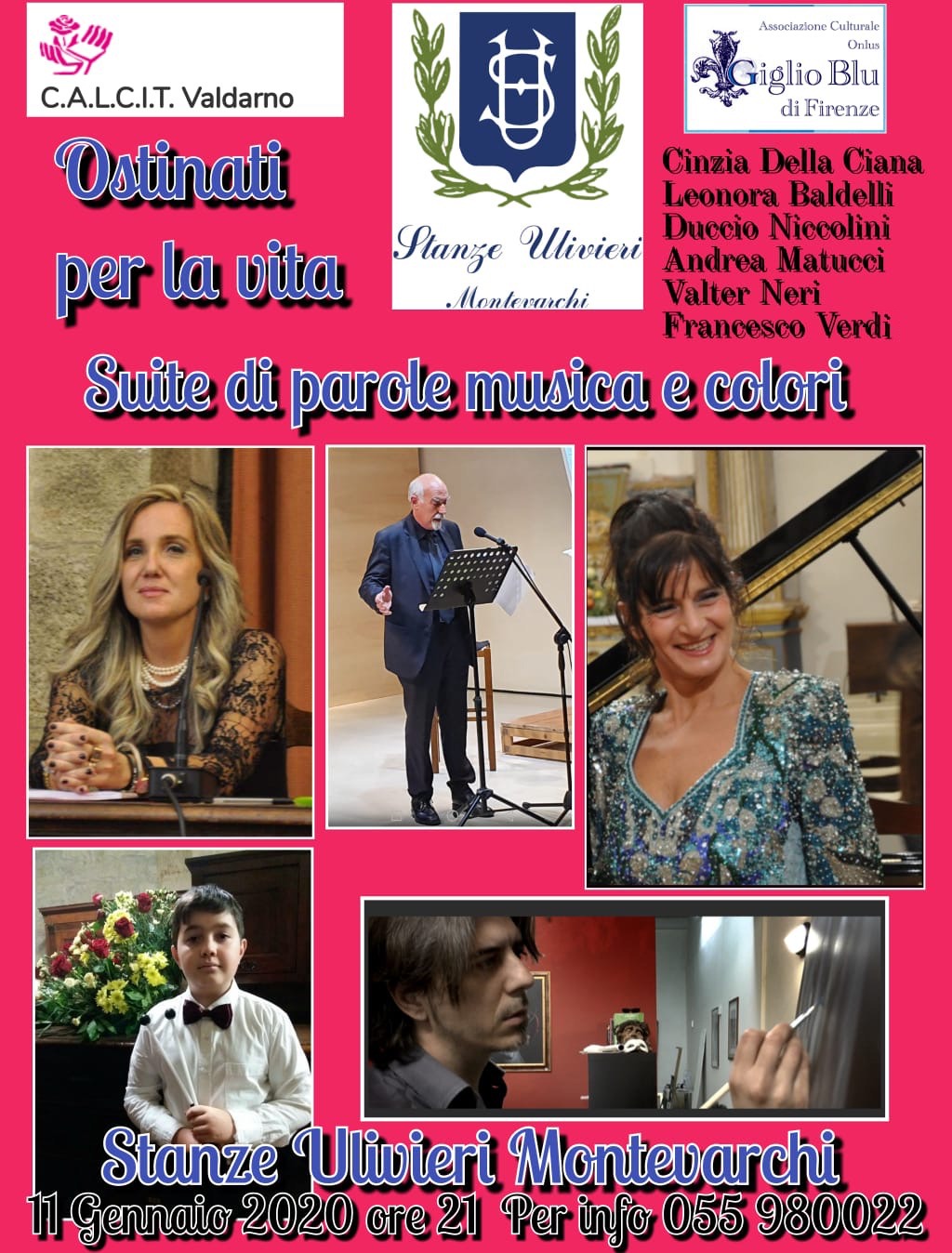 Alle Stanze Ulivieri di Montevarchi, che si ringraziano sentitamente per la generosa accoglienza, sabato 11 gennaio 2020 alle ore 21 si è replicatato un evento, già apprezzato alla CA. MU. di Arezzo : OSTINATI PER LA VITA a favore del C.A.L.C.I.T. Valdarno.